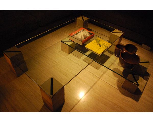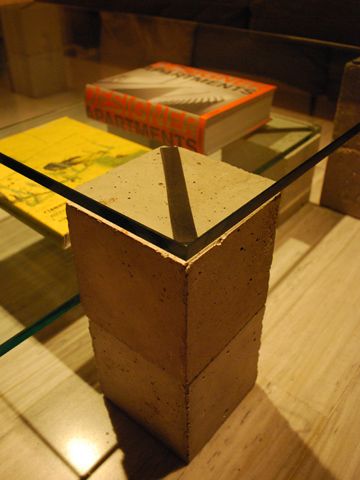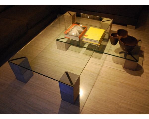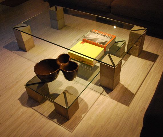 Τραπέζι καθιστικού από μπετονένια δοκίμια, λάστιχο και τζάμι 15χιλ.